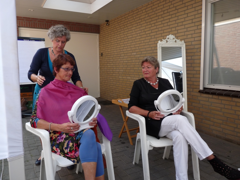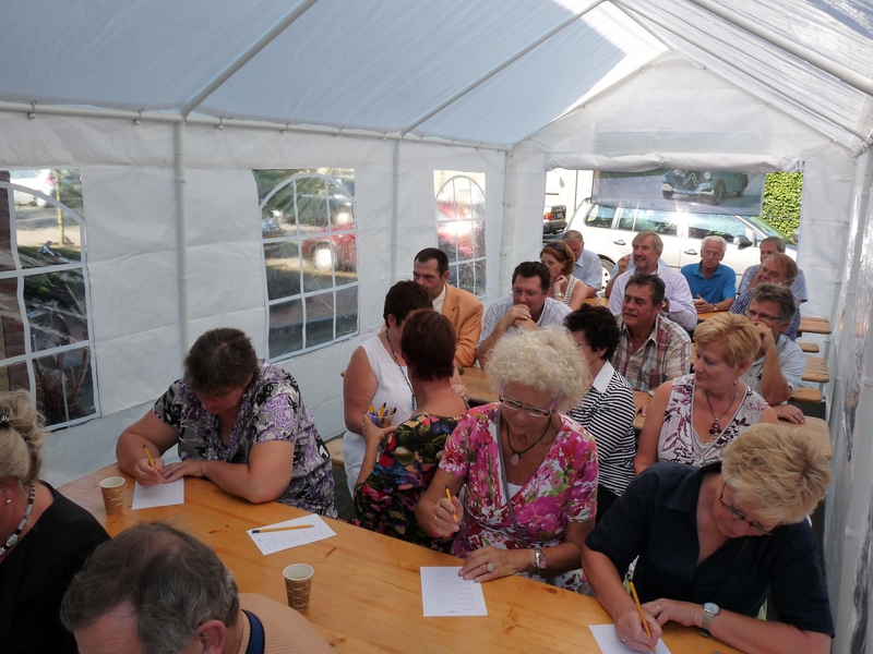Op 3 september ging alle aandacht uit naar de dames in onze vereniging. Nee niet die oude op 4 wielen, maar die leuke op 2 benen! Speciaal voor onze partners een interessante presentatie over kleur en stijl in kleding, gevolgd door een wijnproeverij. Zoals op de foto's te zien is, was er volop hilariteit in de tent, natuurlijk ook toen enkele heren een kleuradvies kregen.. Als intermezzo gingen Geert en Marc terug in de tijd tijdens een fotoshoot die uitmonde in een filmpje waar de Traction natuurlijk een hoofdrol speelde. Matthijs Peters bracht ons na een heerlijke lunch nog even bij hoe nou ook al weer die ontsteking werkt.
