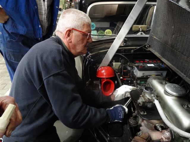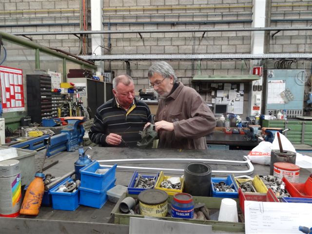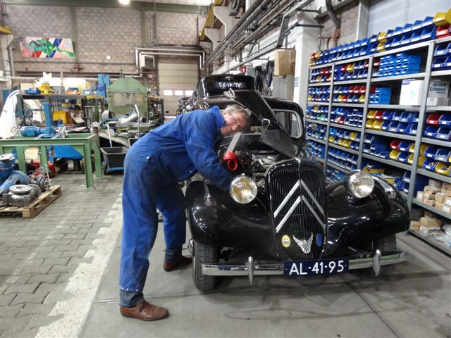 Ik blijf het indrukwekkend vinden om mijn schone overall, met het geborduurde opschrift “Citroën” aan te trekken en dan in die machtige werkplaats van ThermPhos mijn mede leden hard aan het werk te zien……wat een mazzel lid te zijn van TAN Zuid, wat een mazzel dat Huib de Bruine zo’n uitstekende relatie met zijn bazen heeft en bovenal wat een mazzel dat die bazen steeds weer bereid zijn deze schitterende werkplaats een maal per jaar ter beschikking te stellen, wat een mazzel dat de pensioengerechtigde leeftijd opschuift zodat wij nog lang gebruik mogen maken van deze grote “schoonheidssalon” onder deskundige leiding van Huib de Bruine.