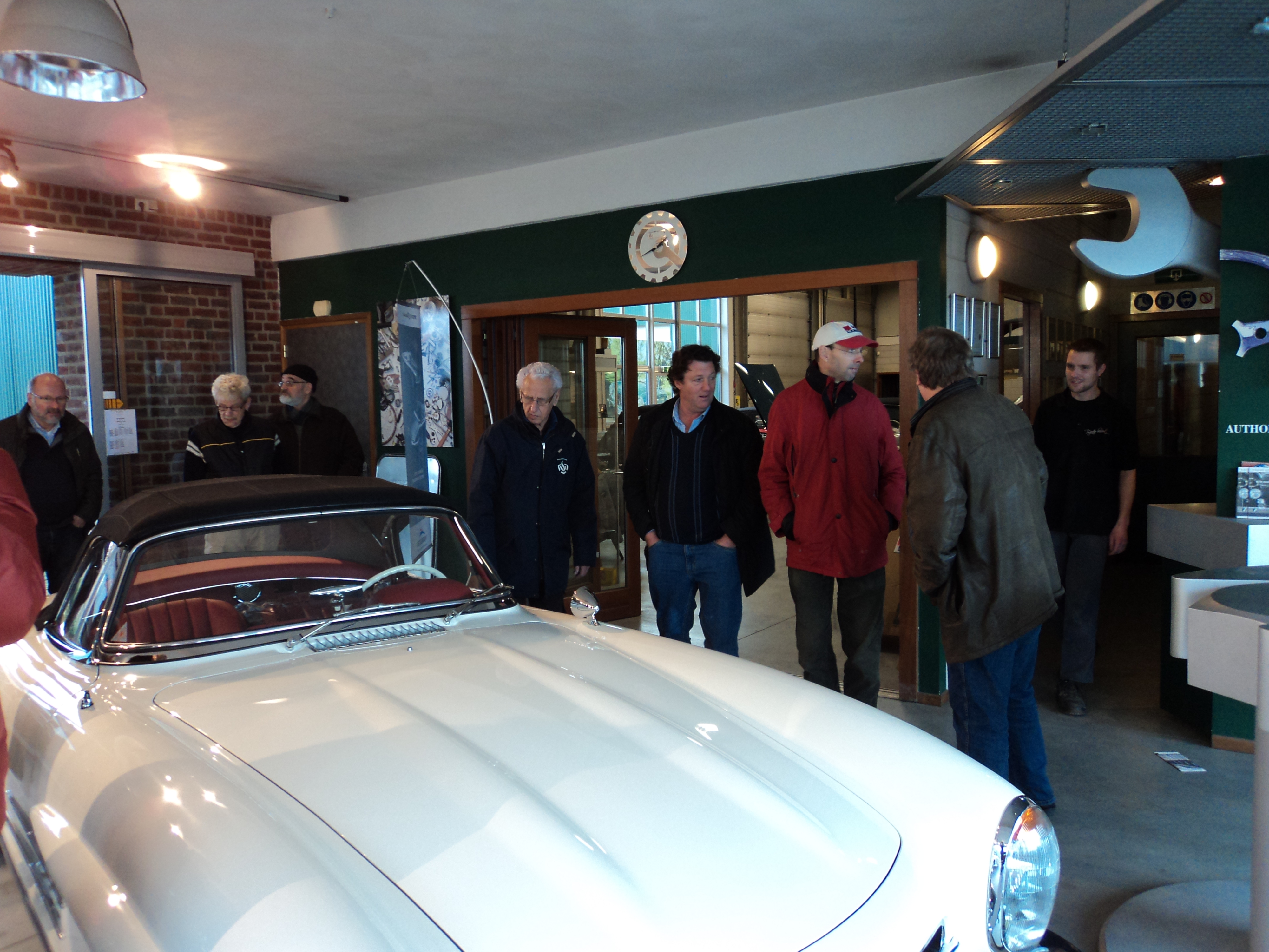 Na dit alles zijn we als verrassing even bij de buren verderop gaan kijken www.classiccarvenlo.nl (v/h de firma Niessen). Dit is namelijk een bedrijf waar vooral hele exclusieve klassiekers worden gerestaureerd. Onze rondleider Luc was speciaal langer gebleven om ons alles te laten zien.