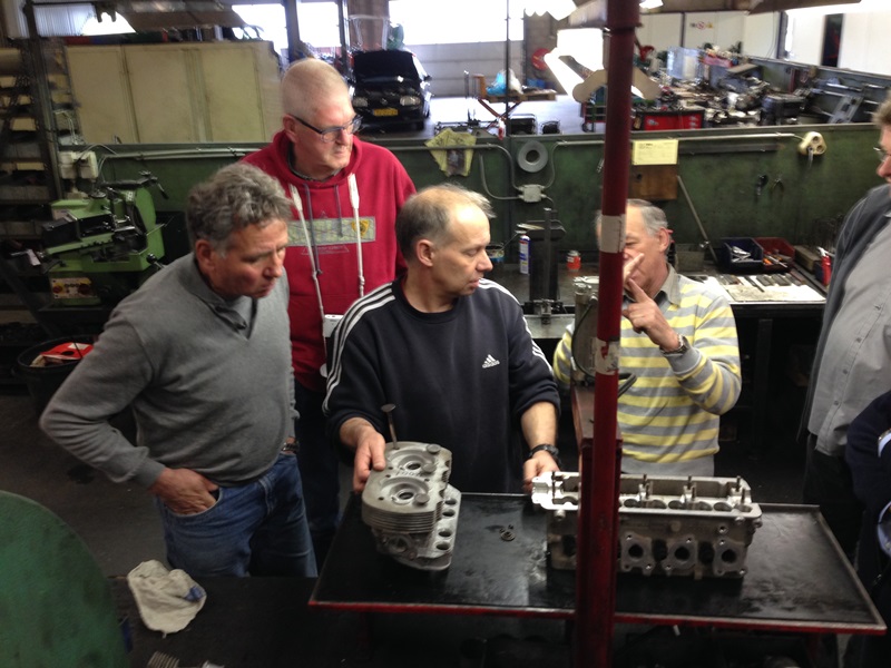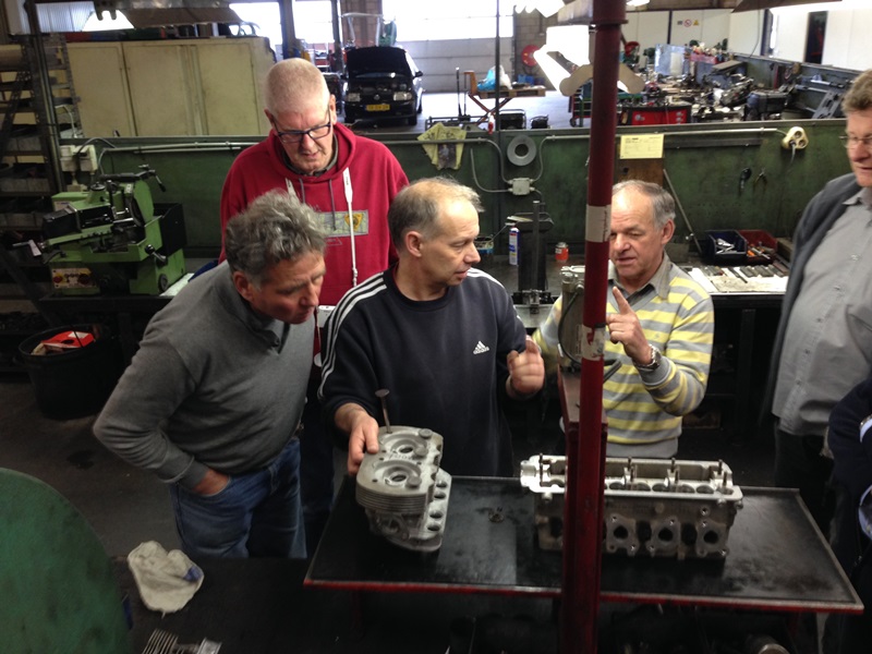 Om 10:00 uur verwelkomt ons Ge Heijnemans ons in zijn bedrijf aan de Ubroekweg 20 in Blerick. Uiteraard was deze dag de gelegenheid om vragen te stellen over alles wat maar te maken heeft met onze motor. De gesprekken ontstonden al snel op parkeerplaats waar, een van onze Belgische vrinden, deskundige uitleg kreeg van de aanwezigen over een te zware zuiger met al de mogelijke gevolgen van dien.