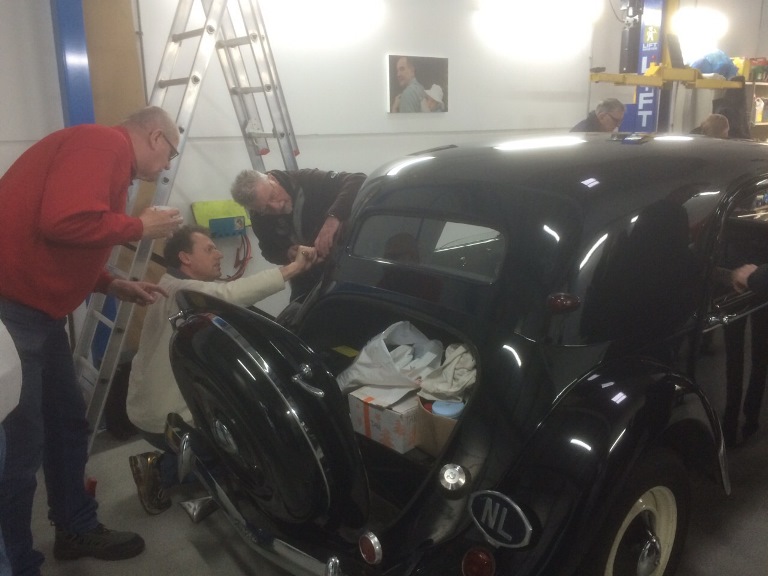 Genoeg gepraat. Marc Vos heeft zijn auto beschikbaar gesteld om de inbouw van de led’s in de richtingaanwijzers te kunnen zien. Na het verwijderen van de oorschelpen van de binnenbekleding werden rondom de lampjes open geschroefd. De wijzigingen werden aangebracht led’s geplaatst, even solderen, testen en de lampjes werden (bij wijze van spreken zo vlug als je dit leest) weer terug geplaatst. Oorschelpjes weer terug en de auto mocht de pitbox weer verlaten. Pim fantastisch gemaakt! Leverbaar voor de meeste armaturen kompleet met benodigde materialen en installatiehandleiding. Voor iedereen die Led-verlichting wil inbouwen in de Traction is een passage langs het centrale magazijn zeker een overweging waard!