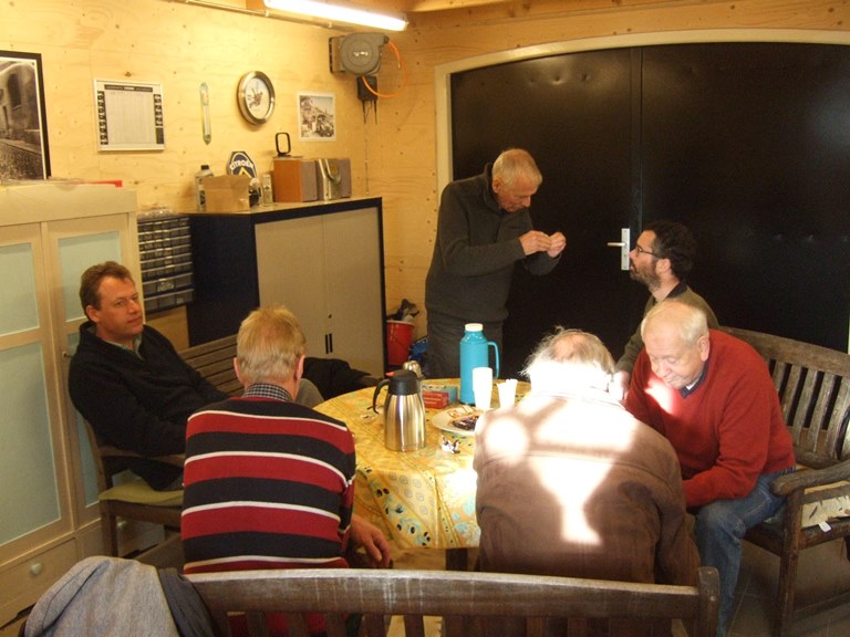 Na de koffie/thee aan de slag met een presentatie van Chris Hahn. Hij legde de werking van de (zinkende) kurken tankvlotter uit en hoe deze verbonden is aan de meter op het dashboard. Een schema ondersteunde dit relaas. De originele tankvlotters hebben een demper, die de schommeling van de benzine in de tank enigszins opvangt. Chris had een simpele maar ingenieuze oplossing gemaakt: een spuitbusje als vlotter. Dat de sleuteldag ook een functie heeft om elkaar te ontmoeten en informatie uit te wisselen en elkaar verder te helpen met de hobby is onderhand wel duidelijk. De keuze uit twee soorten soep en broodjes met worst smaakte helemaal goed, want de innerlijke mens moet ook zijn aandacht krijgen!