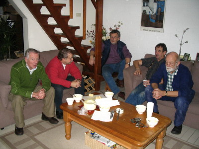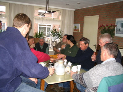 Tiny en Cees hadden weer goed voor ons gezorgd, dus zaten we tussen de middag lekker aan de boterham met erwtensoep. Goed moment om nog even wat technische tips uit te wisselen en te kijken of we met een paar man tegelijk banden kunnen inkopen.