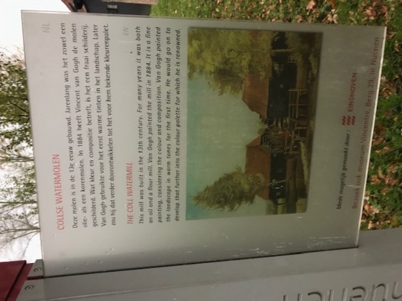 Vincent van Gogh heeft jaren in Nuenen gewoond en vele van zijn imposante werken zijn dan ook gebaseerd op feitelijke beelden uit die omgeving. Zo heeft hij ook in het jaar 1884 de Collse watermolen geschilderd. Enige jaren terug heeft het Noord Brabants Museum dit werkstuk voor enige miljoenen aan hun collectie toegevoegd.