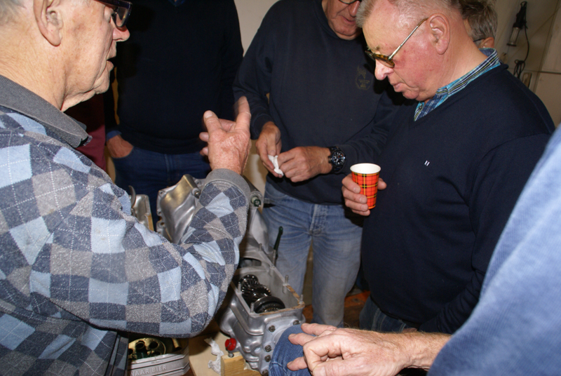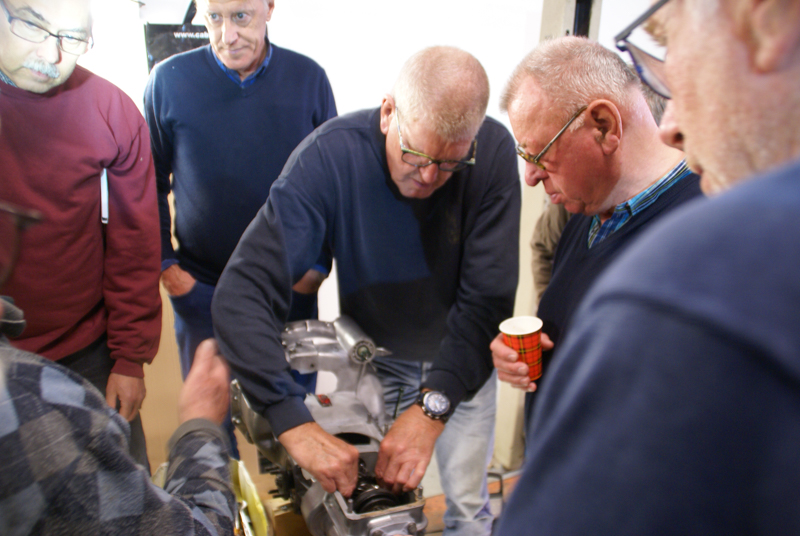 Het onderwerp, de versnellingsbak, was het weer ouderwets sleutelen aangevuld met de uitleg over de werking en bespreken waar je op moet letten om de conditie van de bak te kunnen beoordelen. Leerzaam was het feit dat we gebruik maakten van een gereviseerde bak, die was meegebracht door een deelnemer en we enkele zaken ontdekten, die nog wat extra aandacht nodig hadden.