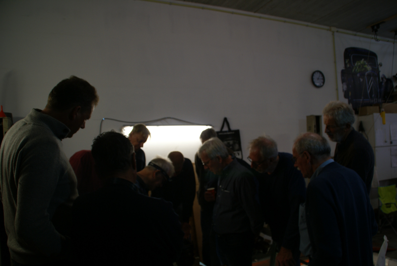 De traction van Ad diende als demo-voertuig en was hiervoor ontdaan van de motorkap, zodat deelnemers ‘zicht’ hadden op de materie. Ben had al een instructie geschreven, maar wilde die eerst in de praktijk toetsen, voordat hij (achteraf) naar de deelnemers wordt verzonden. Het afstellen van de rempedaal is een eitje, maar bij het afstellen van de koppeling moeten een zestal stappen in juiste volgorde worden ondernomen en hierbij ontstond een geanimeerde discussie over het verschil tussen de traditionele drukgroep met drie drukvingers en de moderne diafragma koppeling.