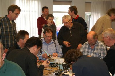 ..te solderen, draden te strippen, transistoren-diodes-weerstanden te monteren, kastjes te testen en te lachen.