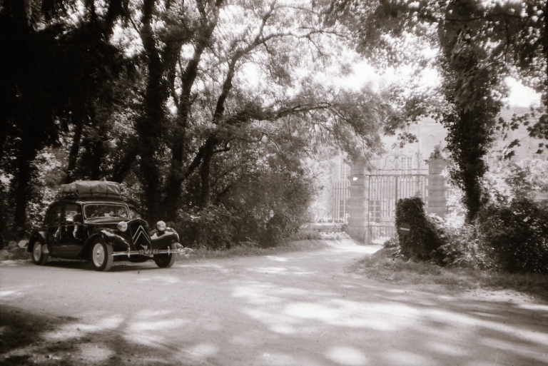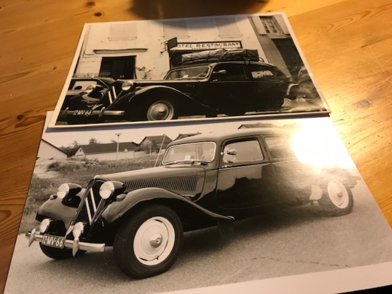 Noud en Joke reden in mei 1974 naar een bevriende kunstenaar in de Corrèze. Hij wist een Traction te koop en had deze voor hen aangekocht. Vooraf was al met verzekering afgesproken dat auto rijdend terug kon. Op naar Frankrijk dus in de 2CV met dochtertje Janneke van 2 jaar oud en een hoogzwangere Joke. Er werd nog een weekje flink op de camping gesleuteld voordat de thuisreis werd ingezet. De Traction voorop en de 2CV erachteraan. Als we elkaar onderweg kwijtraken, dan wachten we bij het bord aan het einde van de stad was de afspraak. In Chateauroux ging het mis. De Traction met Noud was nergens meer te bekennen. Janneke riep ineens “Papa Auto!” en ja hoor ze hadden elkaar gelukkig weer gevonden. Toen kwam de misère bij de Frans/Belgische douane. Het bleek dat de naam op de factuur en het kenteken niet overeenstemden en ze mochten de auto niet uitvoeren. Noud en Joke hebben toen 8 uur aan de grens gestaan - ten einde raad. Een Hollandse vrachtwagenchauffeur bood hulp en met zijn advies dat de douaneploeg al was afgelost, lukte het toch om de grens te passeren. Noud zag er zo Frans uit dat ze hem met een vriendelijke groet door lieten rijden. Eenmaal over de grens sprintte nog een gendarme uit zijn hokje, maar de slagboom was al gepasseerd. Eenmaal bij de Nederlandse grens aangekomen, ging het inklaren met wat discussie uiteindelijk goed en kon de auto naar huis worden gereden.