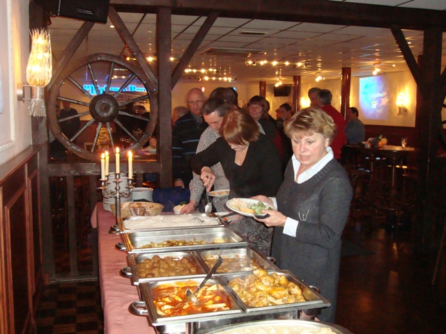 Na de goede wensen van het (nieuwe) bestuur voor eenieder werd het warm en koud buffet geopend en vond het gezellige informele gedeelte van de receptie plaats.
