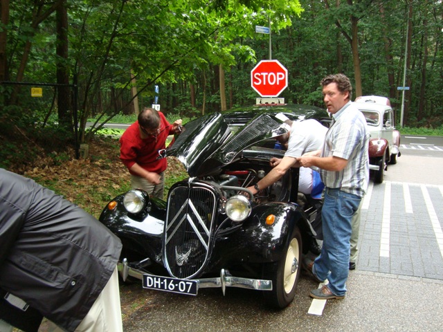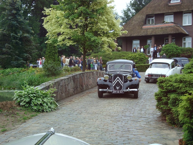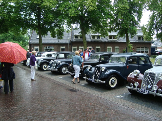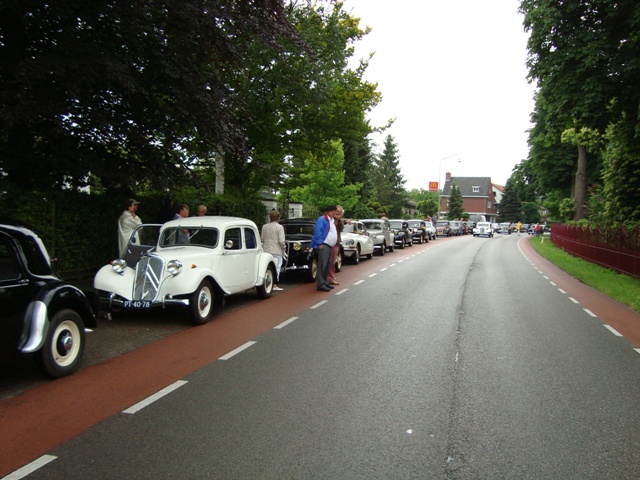 Dit jaar waren we na een leuke rit ook nog opgenomen in een echt defilé. Iedere Tractionist werd met zijn auto (type en bijzonderheden) aangekondigd en diende een vraag over Citroen of de Traction te beantwoorden. Een correct antwoord leverde een prijs op. De chauffeur mocht daarna proberen op een minuscule rotonde zijn Traction te keren zodat de volgende Traction zijn aantreden kon maken.