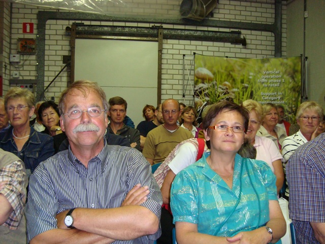 Na dit defilé werd de rit hervat om bij een champignon teler (5 ton per week voornamelijk voor de export) een stop te maken. Hier kregen we naast een film en een rondleiding ook diverse champignon heerlijkheden voorgezet. Deze smaakte diverse tractionisten zo goed dat de latere asperge consumptie hier onder heeft geleden. Dit jaar bleef er voor het eerst in de aspergerit geschiedenis een aantal schalen asperges over.