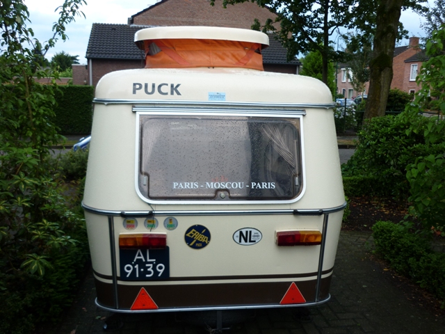 Voor Wim, die als buurman en goede vriend al diverse avonturen in de afgelopen 30 jaar met Rolf had beleefd, was het ook de kans van zijn leven. De volgende keer PMP is pas over 25 jaar, dus daarom hoefde ik niet lang na te denken. Wim heeft ook speciaal voor de rit een Traction gekocht en opgeknapt. De afgelopen 2 jaar heeft hij intensief aan de auto gewerkt. Zo was de carosserie nog in de oude lak, maar wel erg grijs geworden. Een flinke poetsbeurt met Commandant en was had een verbluffend resultaat. Dus Wim kan onderweg nog wat bijverdienen met autopoetsen mocht het equipe zonder harde valuta aan de kant staan. Ook werd via Marktplaats voor beide echtparen al snel een Eriba Puck gevonden. Daarbij gebruik gemaakt van de adviezen van Henk Maas en Jac Jamar die dezelfde minicaravans bezitten. Marianne heeft de naam Puck en Muck voor de Eribaatjes bedacht. En die namen staat dus ook in grote letters achterop.