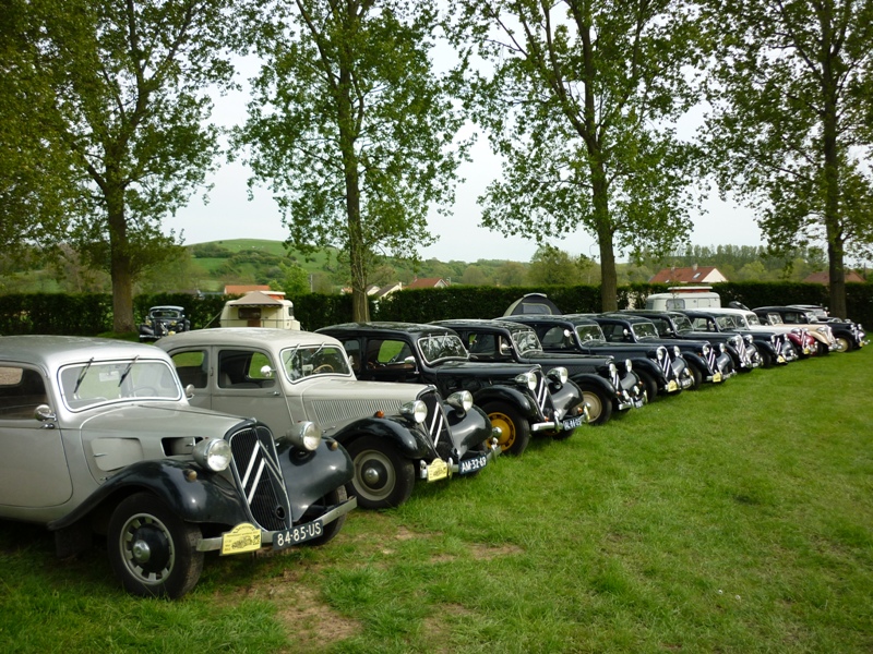 Woensdag was het al gezellig druk op de fantastische (kleine) camping des Trois Pays in Licques (Pas de Calais). Catherine et Denis Lance hadden als eigenaren een speciaal veld voor TAN vrijgemaakt, waar de Tractions, caravans en tenten in een grote kring konden staan met middenin de partytenten. Versieringen met afdelingvlaggen en lampen maakten het compleet. De welkomstborrel kon donderdag meteen van start, waarbij de ervaringen van de heenreis uitgewisseld werden. Geen echte problemen met de voitures; buiten een uitgelopen motorlager (dan toch maar de luxe wagen opgehaald), geoxideerd contact van een startschakelaar, een niet ladende dynamo en wat afstellingen waren de werkzaamheden op het TAN-veld.