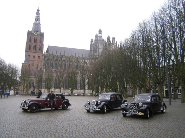 Een van de eerste stops was het Jeroen Bosch Art Centrum. In 2016 is het Jeroen Boschjaar gepland met tentoonstellingen enz. In dit centrum kon men al een voorproefje nemen, want ruim 40 deelnemers parkeerden hun auto in de directe omgeving om een bliksembezoek af te leggen. Gelukkig was door Jan Samuels wat gelobbyd om de parkeercontroleurs een ander deel van de stad te kiezen voor hun strooptocht naar foutparkeerders. De St. Jan werd menigmaal als achtergrond gefotografeerd, enkele markante plaatsen werden geschouwd. Door het slechte weer lonkte het niet echt om even uit te stappen.
