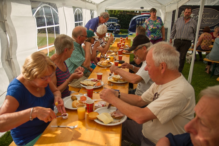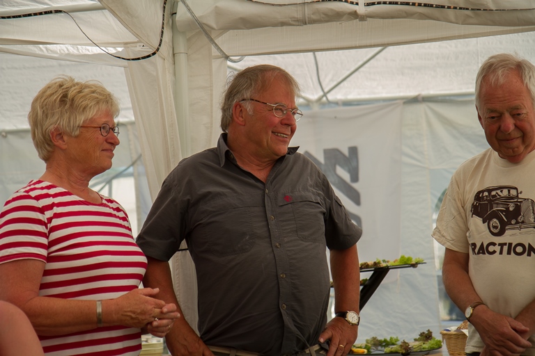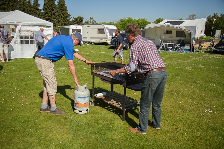 Zaterdag hadden we een vrije dag, wat eenieder zelf in kon vullen. Sommigen gingen nogmaals toeren door het mooie gebied, anderen pakten de fiets en weer andere zijn nog naar Citromobile afgereisd. Het was een warme en mooie dag en 's middags om 17.00 uur zijn we daarom maar begonnen met een drankje en om 18.30 uur waren de BBQ's heet genoeg om al het vlees te roosteren. Ieder voor zich, salades gemaakt door de organisatie en de tafels mooi gedekt, hebben de meeste van ons eerst bij hun eigen tafel met stoeltjes om de tent gegeten.
