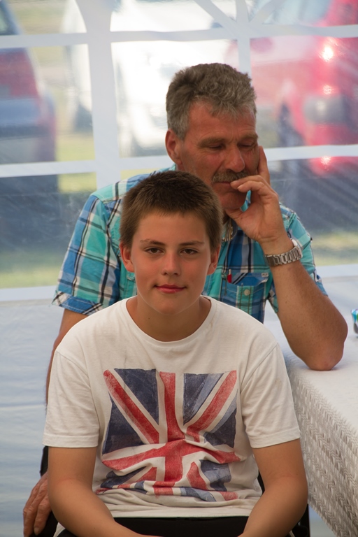 Groot nieuws was direct daarop volgend de aankondiging dat Johan die dag jarig was. Luid zingen was, in de grote TAN Zuid tent, onze bijdrage. Veel groter was de verrassing van het schitterende cadeau , een prachtig schilderij, gemaakt door Nelly, afbeeldend de bekende Traction cabrio van Johan, in de juiste groene kleur, op het strand van Walcheren. Daarna ontvingen wij ons auto schildje….absoluut het mooiste auto schildje wat TAN Zuid ooit heeft vervaardigd….een replica van dit schilderij!!!!