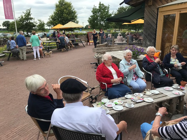 De tocht ging over smalle wegen en buurtschappen richting De Peel. Er was een stop gepland bij het Buitencentrum “De Pelen” te Ospel. Hier was er voor iedereen koffie of thee en Limburgse vlaai. Ook konden de mensen een drankje bestellen. Veel goede herinneringen over deze mooie streek werden opgehaald.
