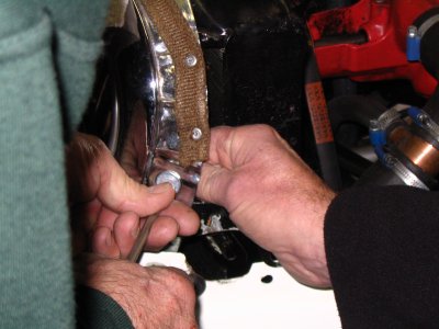 Op een kille winterdag kwamen we 's ochtends in Lottum aan bij Frans en Ria Gommans, alwaar de kachel weer heerlijk snorde in de mooie sleutelruimte. Met een kop koffie achter de kiezen begonnen we aan het verhaal van de Traction van Frans. Wat was het probleem, de motorkap sluit niet mooi aan op de carrosserie en de grille en Frans vroeg advies hoe we dit probleem het beste konden oplossen. Aangezien er meerderen van ons al eens met dit bijltje gehakt hadden, togen we snel aan het werk om de motorkap los te nemen en te kijken hoe het daaronder zat met de maten. Het bleek dat het rechter voorwiel een centimeter dichter bij het achterwiel stond dan het wiel aan de andere zijde. Met het maatboek van Chris in de hand en de centimeter werd verder gemeten. Uiteindelijk bleek de voortrein recht op de jambonneau te zitten, maar toch scheef te staan. Daarom werd besloten dat Frans het beste wat vulplaatjes kan maken en die monteren. Als alles dan weer recht zit, kan ook de motorkap afgehangen worden.