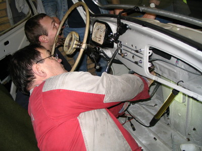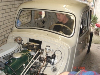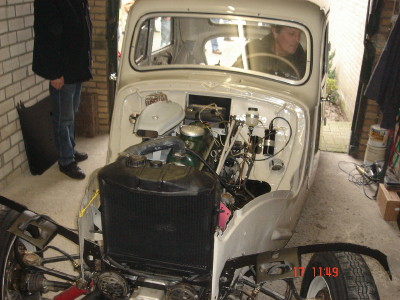 Nu stond alles in het teken van het aan de praat krijgen van de gereviseerde motor. Uw verslaggever was wat later ter plekke en kwam toen alles al soepel rondsnorde. De oorzaak van het niet starten bleek een storing in de bedrading. Toen dit met wat noodverbanden werd uitgetest kwam de sleutelploeg erachter hoe het moest. Ook een van de claxons bleek sluiting te maken, dus daar wordt nog naar gekeken.