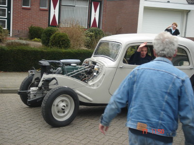 Resultaat van dit alles was dat Theo een blokje om kon gaan rijden: 1 stoel erin, geen spatborden of motorkap en geen achterklep. Dus dat was wel een spectaculair gezicht!