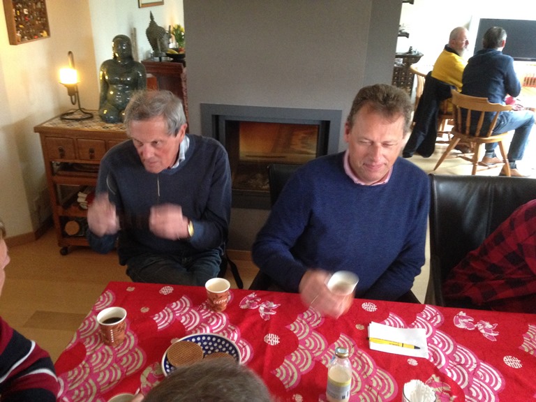 In de periode tot nu toe heeft hij van twee motoren één gemaakt waarbij de nodige onderdelen zijn gereviseerd en vernieuwd. Ook de verschillende onderdelen van de voortrein heeft hij in die periode zodanig onder handen genomen dat ze nu goed konden worden gemonteerd. De Traction hing, in een ruimte die volledig Citroën ademde, in de takels. En de motor stond zodanig praktisch opgesteld dat het werk kon beginnen. Alles was spic en span op orde. Huib en Gaston werden aangewezen als voormannen voor resp. het draaiend krijgen van de motor en het aanbrengen van de volledige voortrein. Zij kregen gelukkig hulp van vele handjes. De startmotor was stuk en moest worden vervangen. Geen probleem, Huib haalde de startmotor uit eigen wagen. Kleppen en ontsteking gesteld en ja hoor om goed 14.00 uur draaide de motor. Een prachtig moment onder applaus begroet. En de voortrein werd ook vakkundig in elkaar gezet. De voorwielophanging, de torsiestaven en hoogtestelling. De verdere opbouw van de voortrein en de afstelling van remvoeringen / remtrommel en uiteindelijk het aanbrengen van de wielen. Vele handjes hebben er toch mooi toe geleid dat de Traction van Paul loopt en weer op zijn pootjes staat. Marieke met hulp van Tho zorgden ondertussen voor de inwendige mens. CHAPEAU.